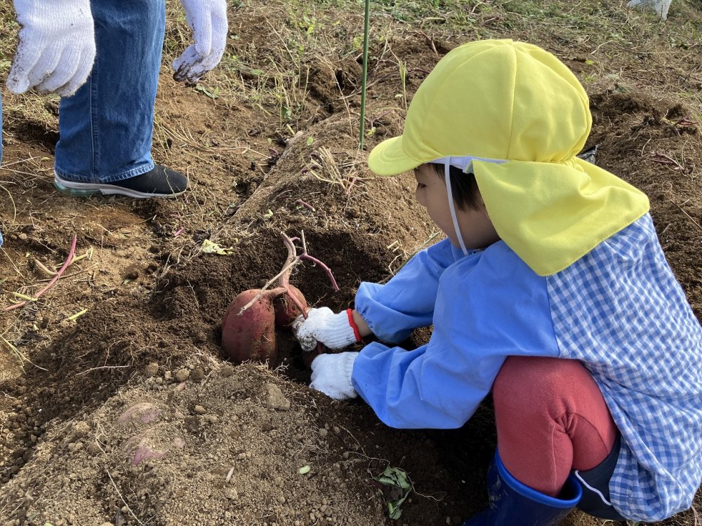 年長さんの遠足は親子でサツマイモ掘りにいきました。