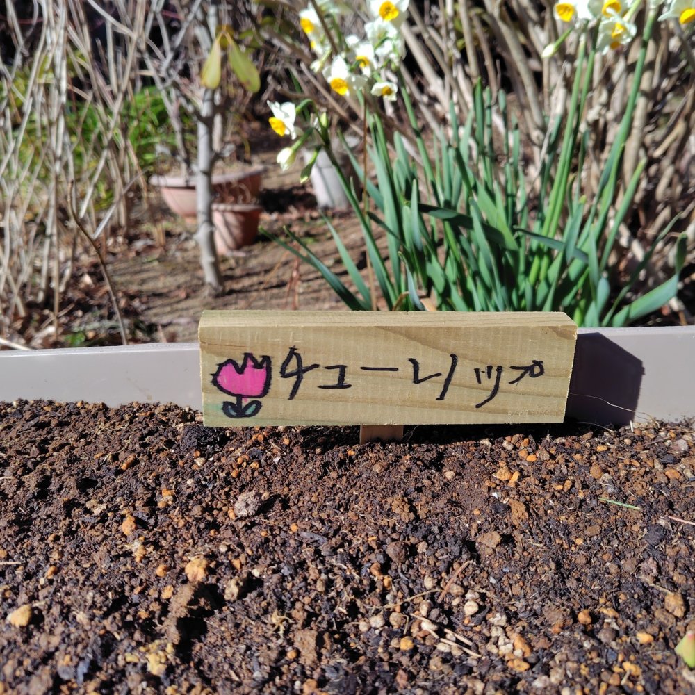 11月に年中さんがチューリップの球根を植えてくれたプランター。